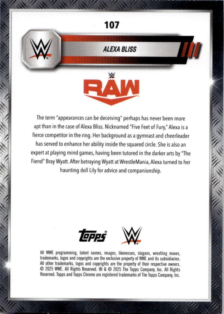 2025 Alexa Bliss Topps Chrome BLUE REFRACTOR 073/150 #107 Monday Night Raw