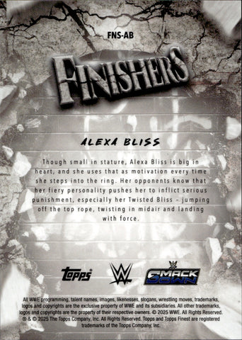 2025 Alexa Bliss Topps Finest FINISHERS BLACK REFRACTOR 05/25 #FNS-AB Friday Night Smackdown