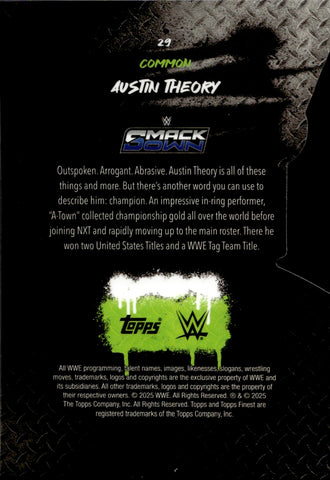 2025 Austin Theory Topps Finest REFRACTOR DIE CUT 39/99 #29 Friday Night Smackdown