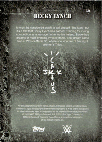 2025 Becky Lynch Topps Chrome x Cactus Jack AQUA SHIMMER REFRACTOR 019/199 #59 Monday Night Raw