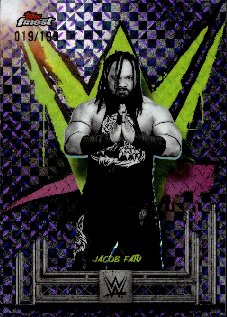 2025 Jacob Fatu Topps Finest PURPLE CHECKERBOARD REFRACTOR 019/199 #96 Friday Night Smackdown