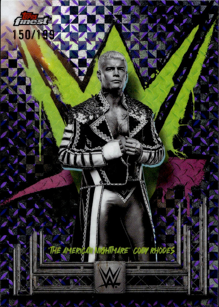 2025 "The American Nightmare" Cody Rhodes Topps Finest WWE PURPLE CHECKERBOARD REFRACTOR 150/199 #10 Friday Night Smackdown