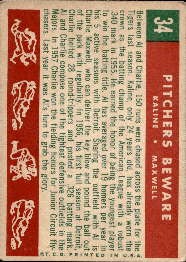 1959 Al Kaline Maxwell Topps Detroit Tigers #34 BV$100