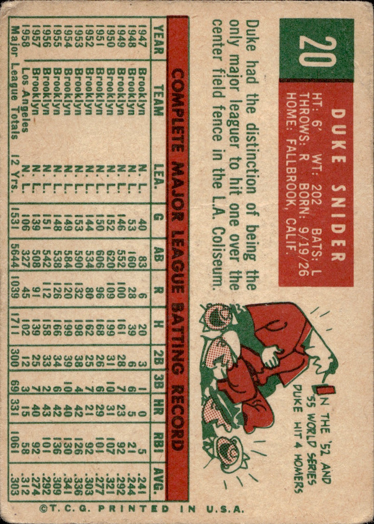 1959 Duke Snider Los Angeles Dodgers #20 BV$80