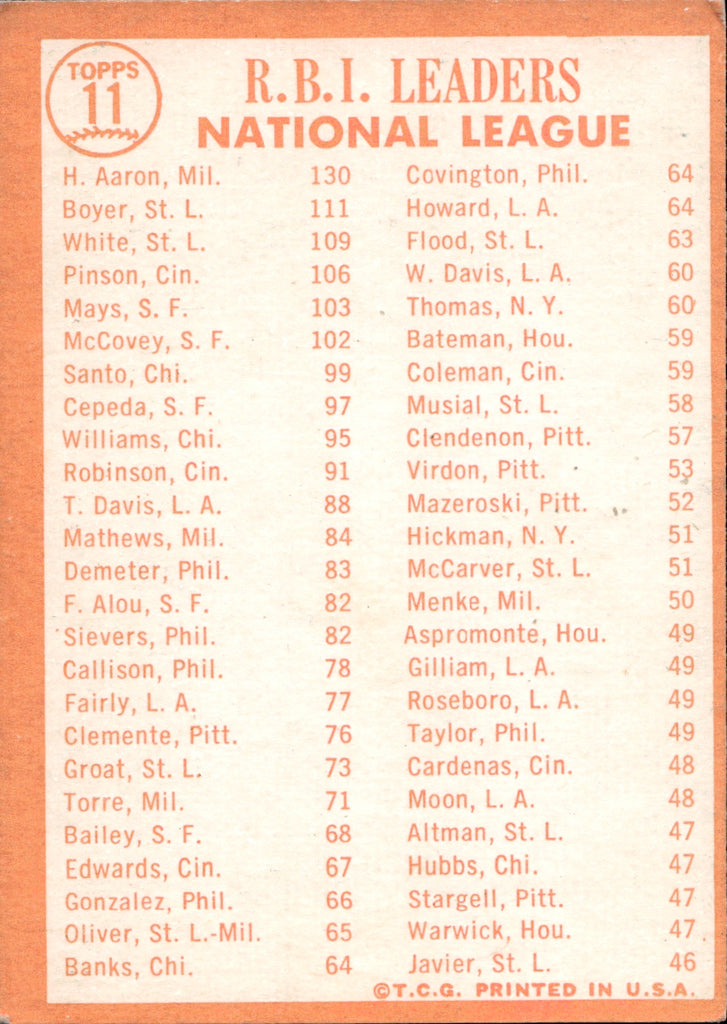 1964 Aaron Boyer White Topps Braves Cardinals #11 BV$25 2