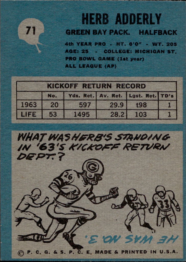 1964 Herb Adderly Philadelphia Green Bay Packers #71 BV$35