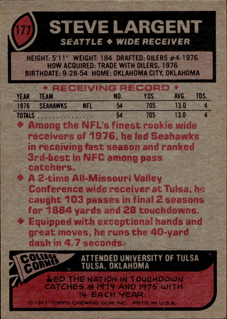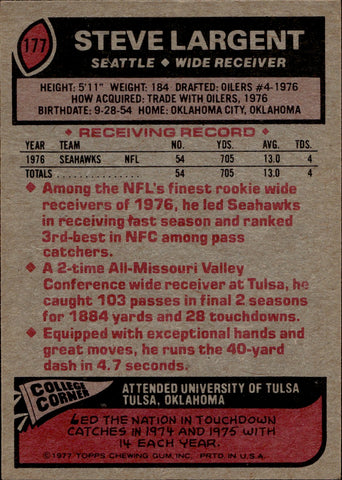 1977 Steve Largent Topps Seattle Seahawks #177 BV$50