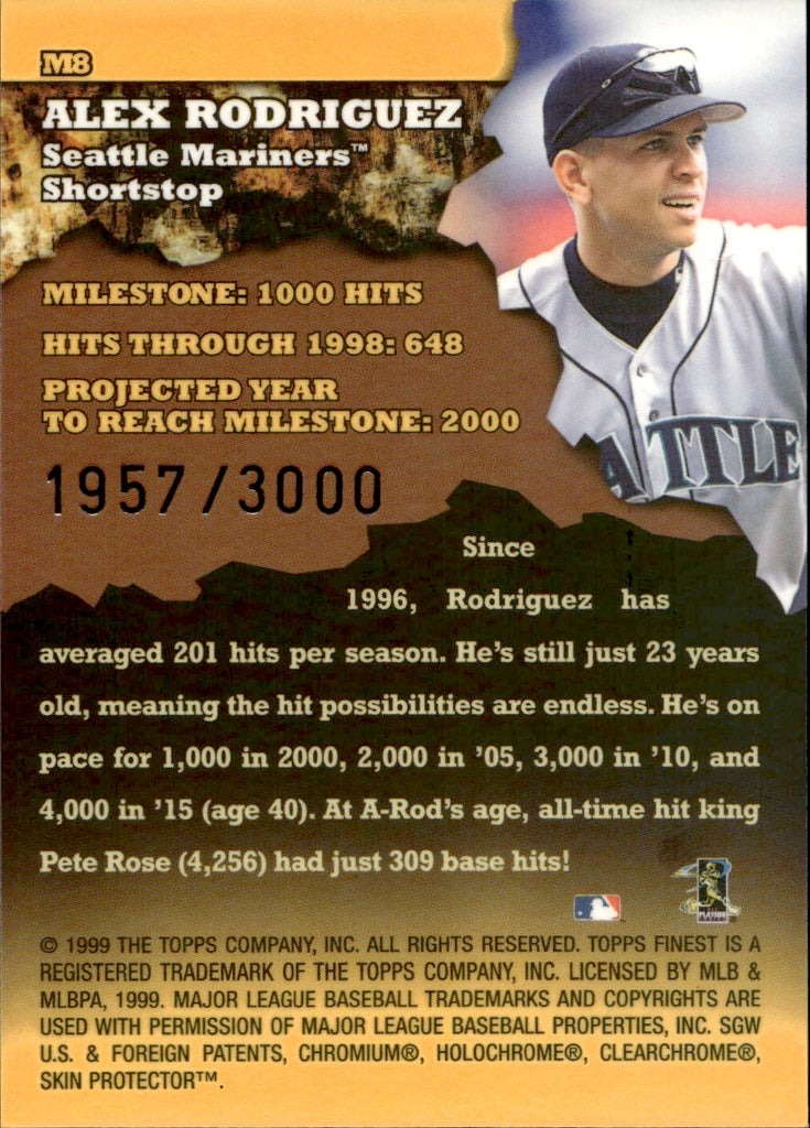 1999 Alex Rodriguez Topps Finest MILESTONE REFRACTOR 1957/3000 #M8 Seattle Mariners
