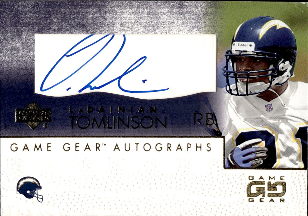 2001 LaDainian Tomlinson Upper Deck ROOKIE GAME GEAR AUTO AUTOGRAPH RC #LT-GS San Diego Chargers HOF *Damaged*
