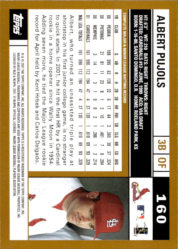 2002 Albert Pujols Topps BACK PHOTO PLACIDO POLANCO IN CAP #160 St. Louis Cardinals
