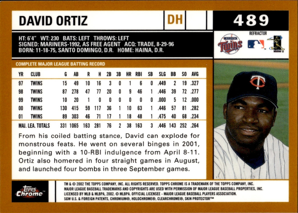 2002 David Ortiz Topps Chrome GOLD REFRACTOR #489 Minnesota Twins HOF