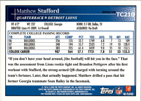 2009 Matthew Stafford Topps Chrome REFRACTOR ROOKIE #430 Detroit Lions *NRMT Surface*