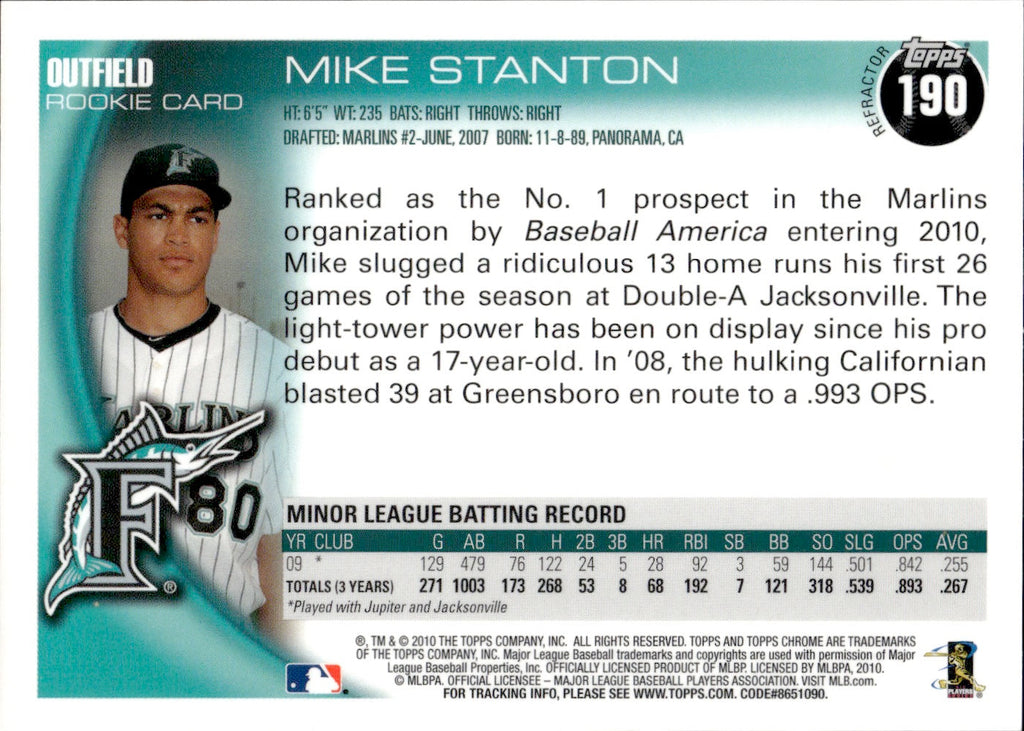 2010 Mike Stanton Topps Chrome WRAPPER REDEMPTION REFRACTOR ROOKIE RC #190 Florida Marlins