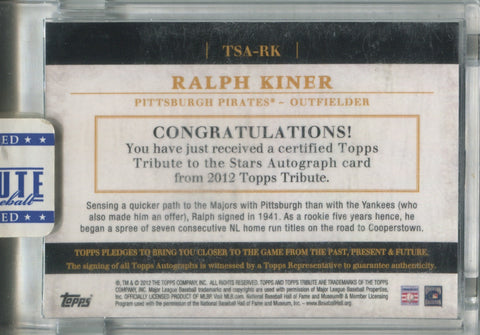 2012 Ralph Kiner Topps Tribute AUTO 18/24 AUTOGRAPH #TSA-RK Pittsburgh Pirates HOF *Case Scratches*