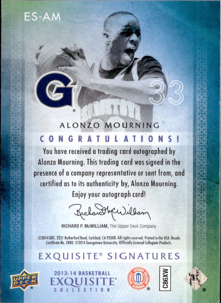 2013-14 Alonzo Mourning Upper Deck Exquisite EXQUISITE SIGNATURES AUTOGRAPH AUTO 4/65 #ES-AM Georgetown Hoyas Miami Heat