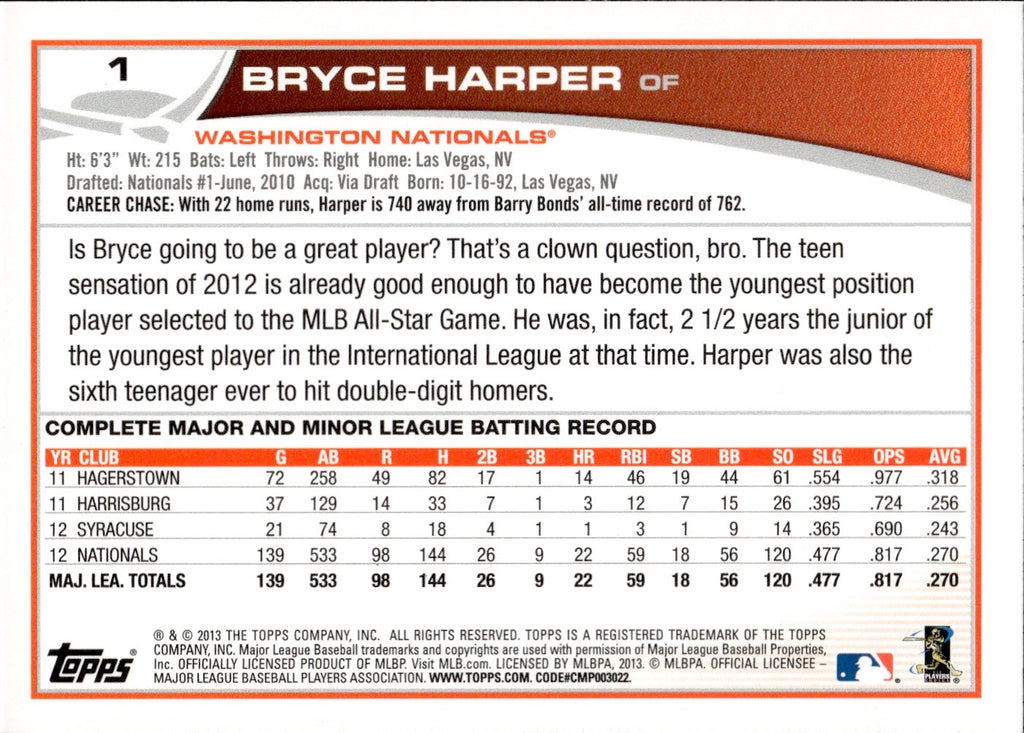 2013 Bryce Harper Topps SP PHOTO VARIATION #1 Washington Nationals