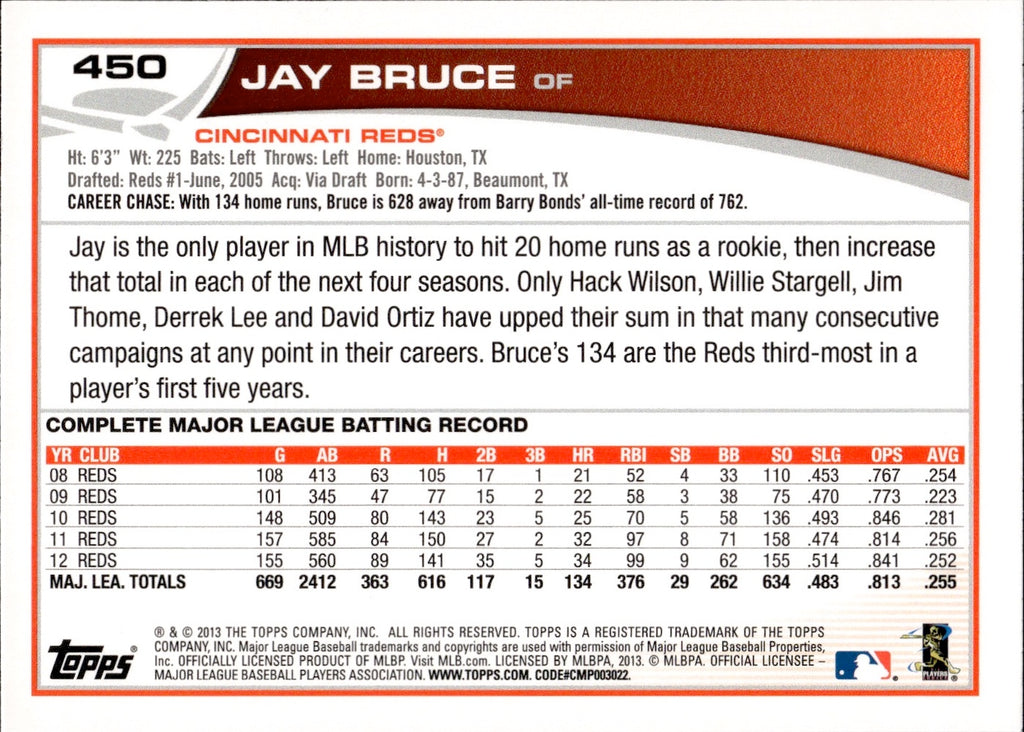2013 Jay Bruce Topps SP PHOTO VARIATION #450 Cincinnati Reds