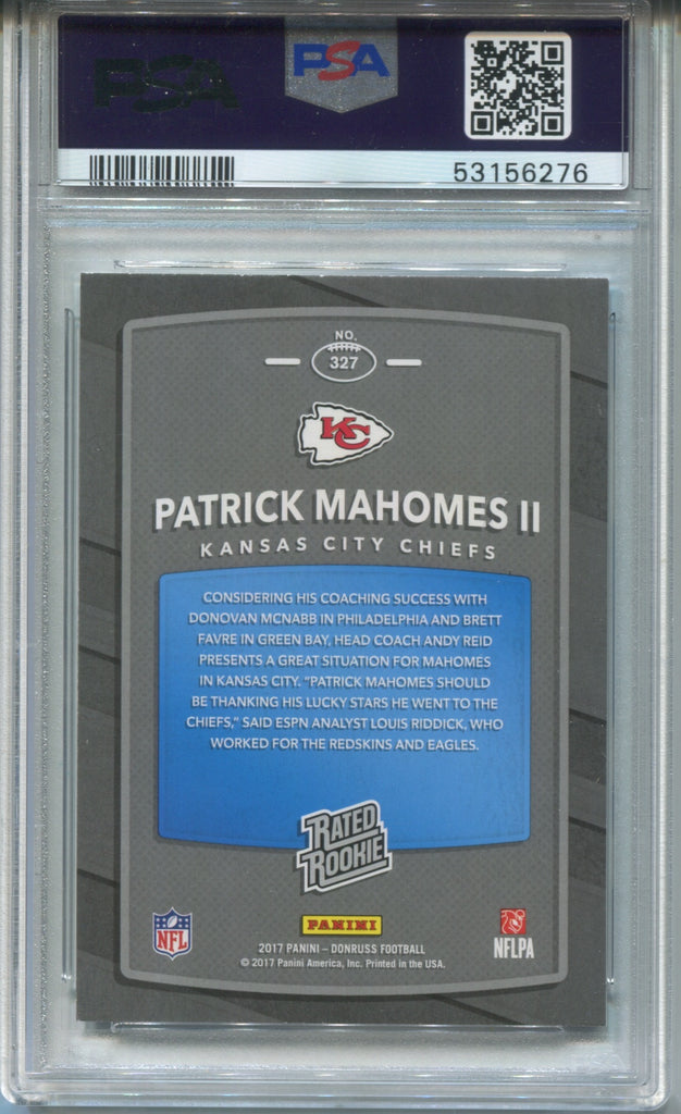 2017 Patrick Mahomes II Panini Donruss RATED ROOKIE RC PSA 8 #327 Kansas City Chiefs 6276
