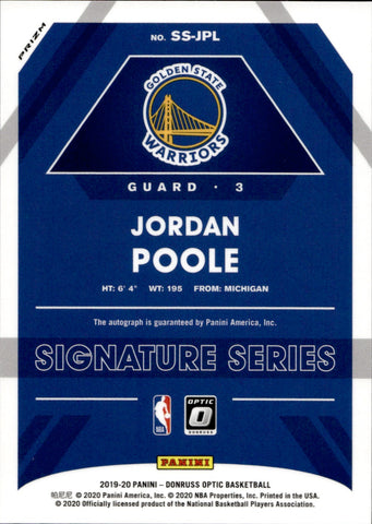 2019-20 Jordan Poole Donruss Optic SIGNATURE SERIES CHOICE PRIZM ROOKIE AUTO AUTOGRAPH RC #SS-JPL Golden State Warriors