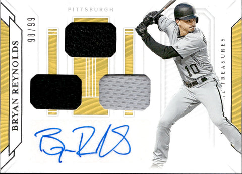 2019 Bryan Reynolds Panini National Treasures GAME GEAR SIGNATURES TRIPLE JERSEY AUTOGRAPH 98/99 AUTO #GGS-BY Pittsburg Pirates