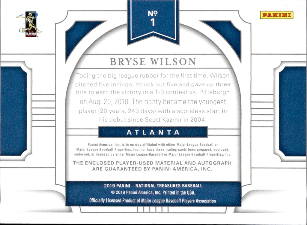 2019 Bryse Wilson Panini National Treasures ROOKIE PATCH AUTOGRAPH 47/49 AUTO RC RPA #1 Atlanta Braves