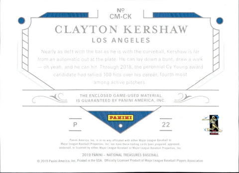 2019 Clayton Kershaw Panini National Treasures COLOSSAL MATERIALS GAME-USED JERSEY 6/49 #CM-CK Los Angeles Dodgers