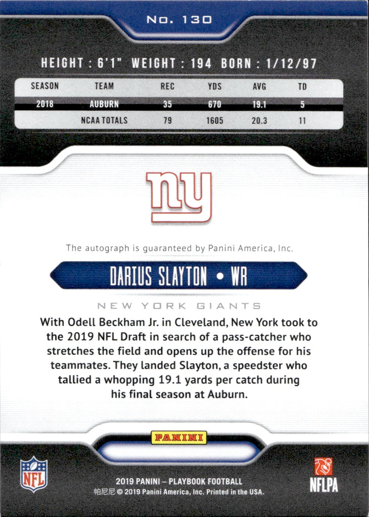 2019 Darius Slayton Panini Playbook AUTOGRAPH ROOKIE AUTO RC 02/75 #130 New York Giants