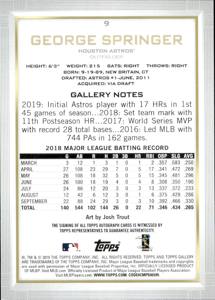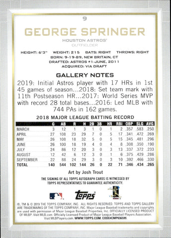 2019 George Springer Topps Gallery AUTOGRAPH AUTO #9 Houston Astros