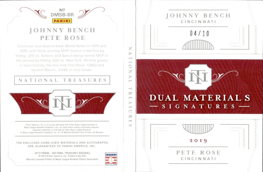 2019 Johnny Bench Pete Rose Panini National Treasures QUAD JERSEY AUTO 04/10 AUTOGRAPH RELIC BOOKLET #DMSB-DR Cincinnati Reds