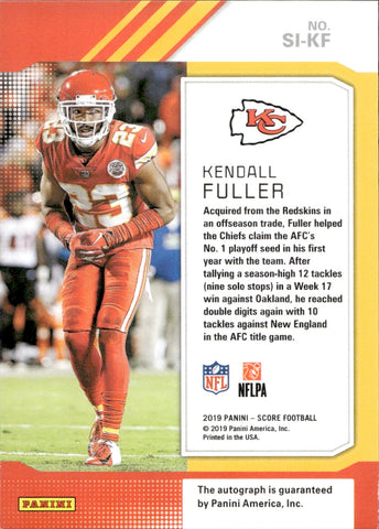 2019 Kendall Fuller Panini Score SIGNATURES AUTOGRAPH AUTO #SI-KF Kansas City Chiefs