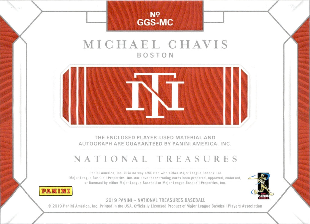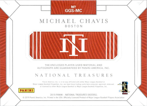 2019 Michael Chavis Panini National Treasures GAME GEAR SIGNATURES ROOKIE DUAL JERSEY BAT AUTOGRAPH 24/99 AUTO RC #GGS-MC Boston Red Sox