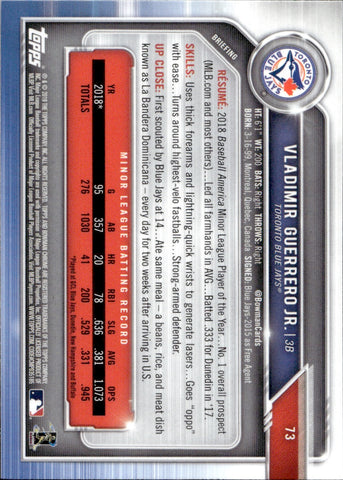 2019 Vladimir Guerrero Jr. Bowman Chrome ROOKIE RC #73 Toronto Blue Jays
