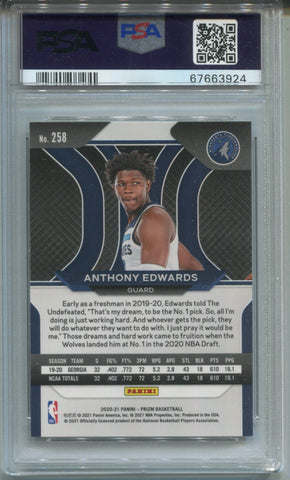 2020-21 Anthony Edwards Panini Prizm ROOKIE RC PSA 10 #258 Minnesota Timberwolves 3924