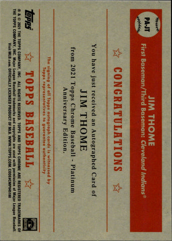 2021 Jim Thome Topps Chrome Platinum Anniversary AUTO AUTOGRAPH #PA-JT Cleveland Indians HOF