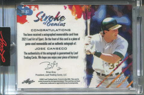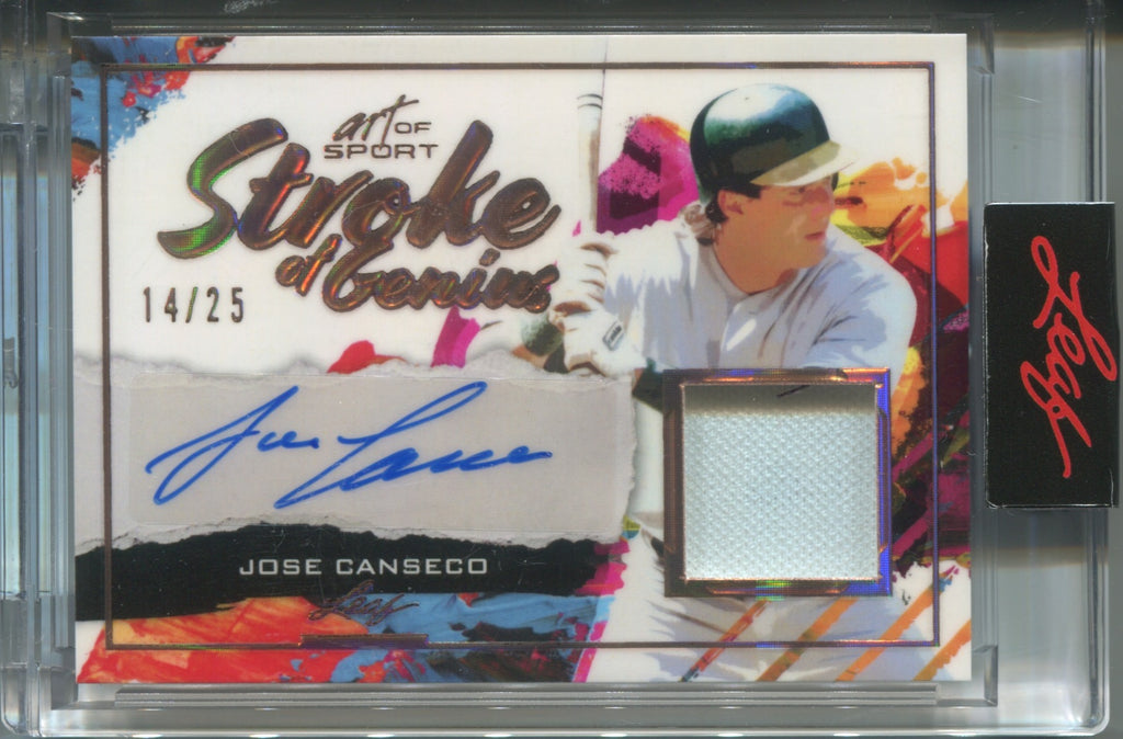 2021 Jose Canseco Leaf Art of Sport STROKE OF GENIUS JERSEY AUTO 14/25 AUTOGRAPH REILC #SG-JC1 Oakland A's