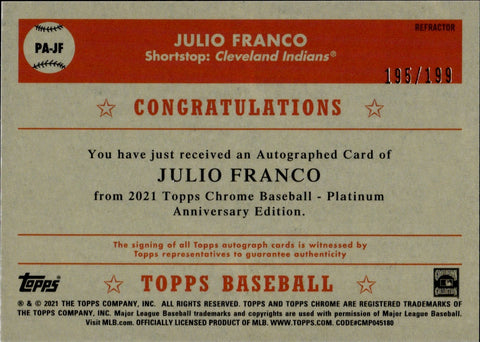 2021 Julio Franco Topps Chrome Platinum Anniversary REFRACTOR AUTO 195/199 AUTOGRAPH #PA-JF Cleveland Indians