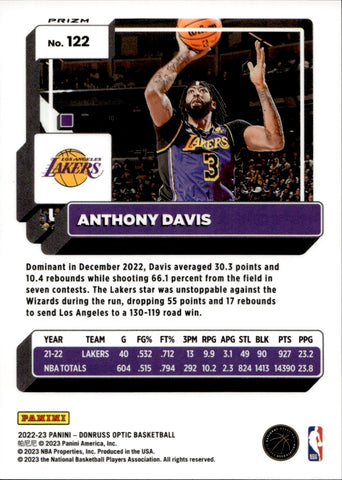 2022-23 Anthony Davis Donruss Optic PURPLE FAST BRK 75/99 #122 Los Angeles Lakers