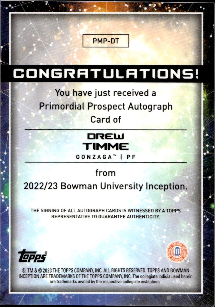 2022-23 Drew Timme Bowman University Inception GOLD PROMORDIAL PROSPECT AUTO 30/50 AUTOGRAPH #PMP-DT Brooklyn Nets