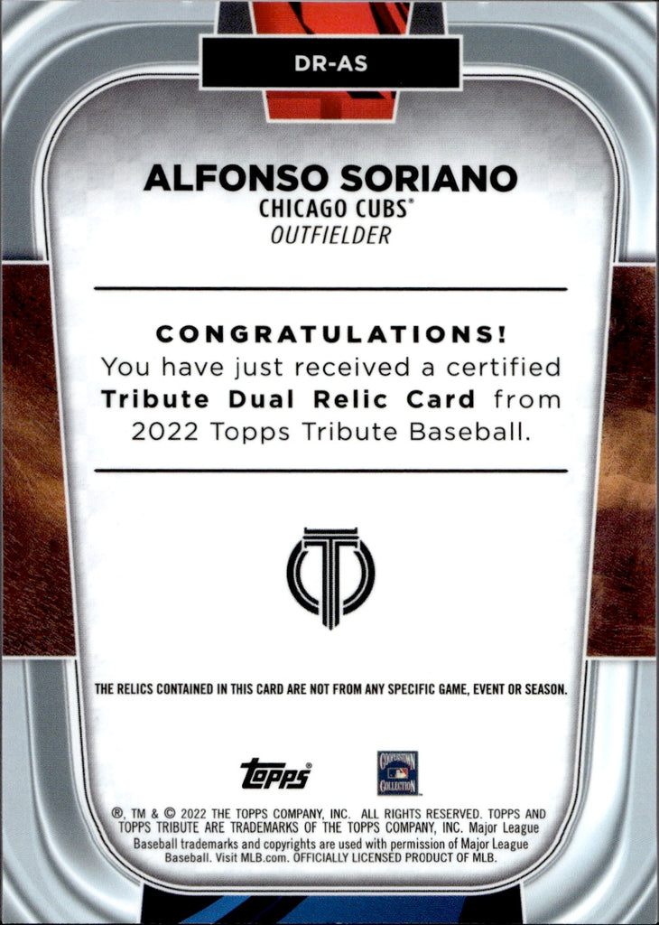 2022 Alfonso Soriano Topps Tribute DUAL RELIC GREEN BAT JERSEY 49/99 Chicago Cubs #DR-AS