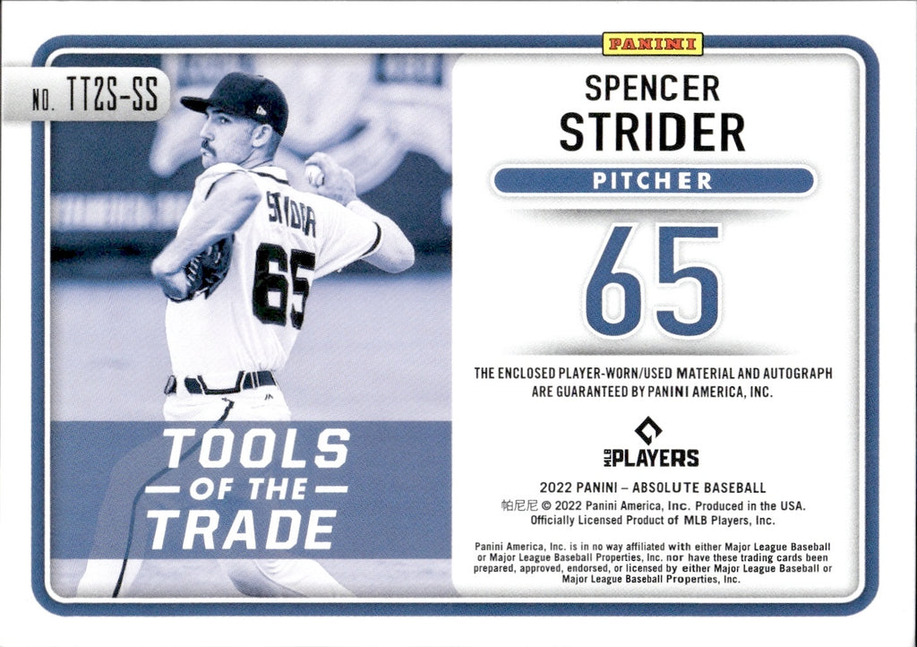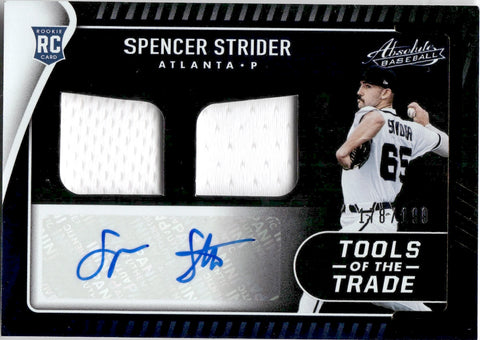 2022 Spencer Strider Panini Absolute ROOKIE TOOLS OF THE TRADE DUAL JERSEY AUTO 178/199 AUTOGRAPH RELIC #TT2S-SS Atlanta Braves
