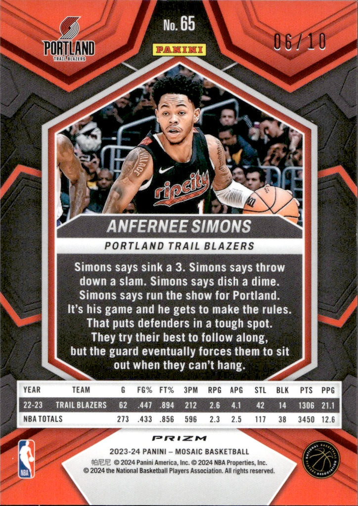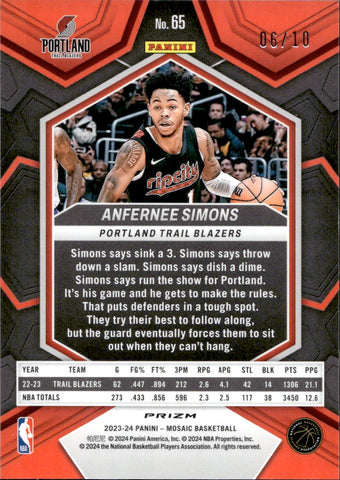 2023-24 Anfernee Simons Panini Mosaic GOLD SCOPE 6/10 #65 Portland Trail Blazers