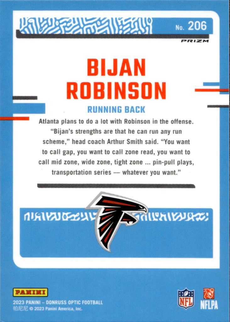 2023 Bijan Robinson Donruss Optic PURPLE SHOCK RATED ROOKIE RC #206 Atlanta Falcons