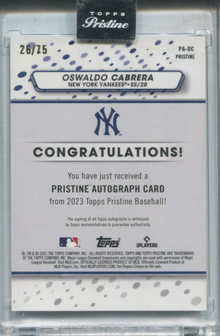 2023 Oswaldo Cabrera Topps Pristine ROOKIE BLUE PULSAR REFRACTOR AUTO 26/75 AUTOGRAPH #PA-OC New York Yankees