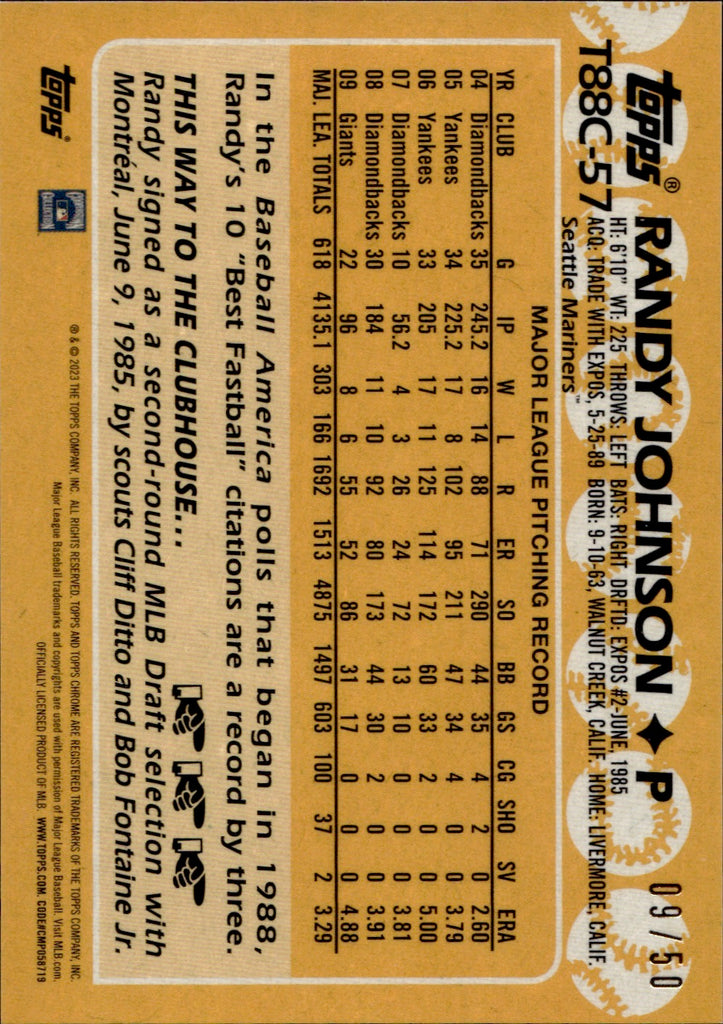 2023 Randy Johnson Topps 1988 SILVER PACK CHROME GOLD REFRACTOR 9/50 Seattle Mariners #T88C-57