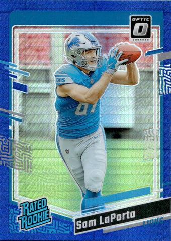 2023 Sam LaPorta Panini Donruss Optic BLUE HYPER PRIZM RATED ROOKIE RC #237 Detroit Lions