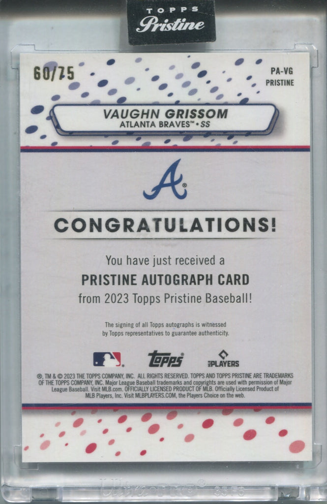 2023 Vaughn Grissom Topps Pristine ROOKIE BLUE PULSAR REFRACTOR AUTO 60/75 AUTOGRAPH #PA-VG Atlanta Braves