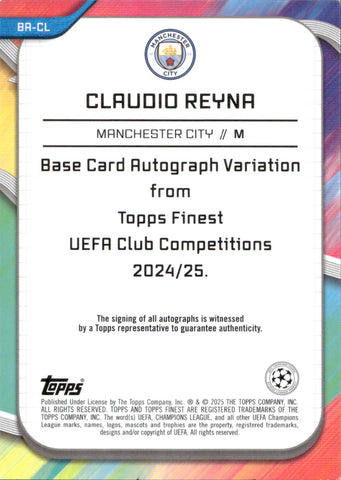 2024-25 Claudio Reyna Topps Finest UEFA CHAMPIONS LEAGUE BLUE REFRACTOR AUTOGRAPH VARIATION AUTO 4/150 #BA-CL RB Manchester City