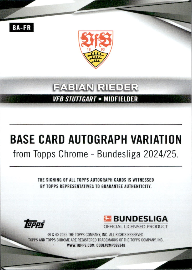 2024-25 Fabian Rieder Topps Chrome Bundesliga TOPPS LOGOFRACTOR AUTOGRAPH VARIATION AUTO 36/52 #BA-FR VFB Stuttgart