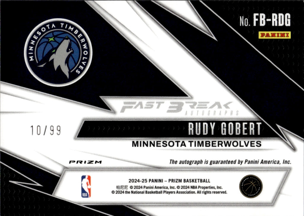 2024-25 Rudt Gobert Panini Prizm RED FAST BRK AUTO 10/99 AUTOGRAPH #FB-RDG Minnesota Timberwolves
