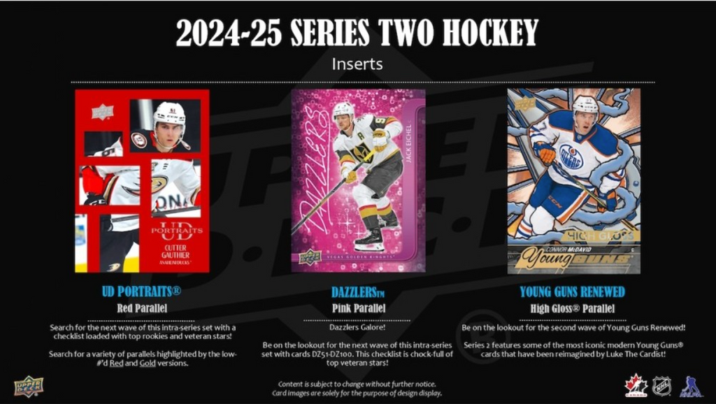 - Series 2 sports the next 250 cards of the 2024-25 Upper Deck Base Set. Annually, the Upper Deck Base Set is the most widely-collected Base Set in hockey. It includes 198 veteran cards, 49 Young Guns rookie cards and three checklist cards. The iconic Young Guns® are the most anticipated rookie cards of the season.